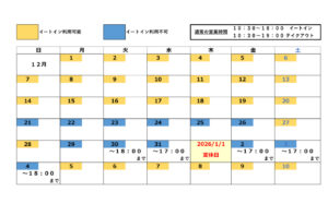イートイン利用不可の日・閉店時間の変更日がございます。