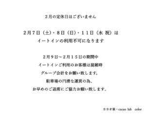 1月の営業について